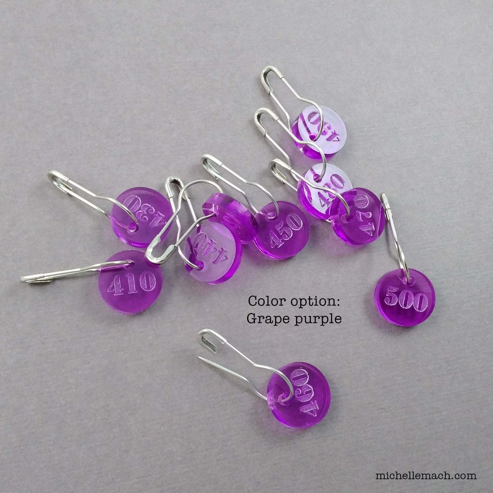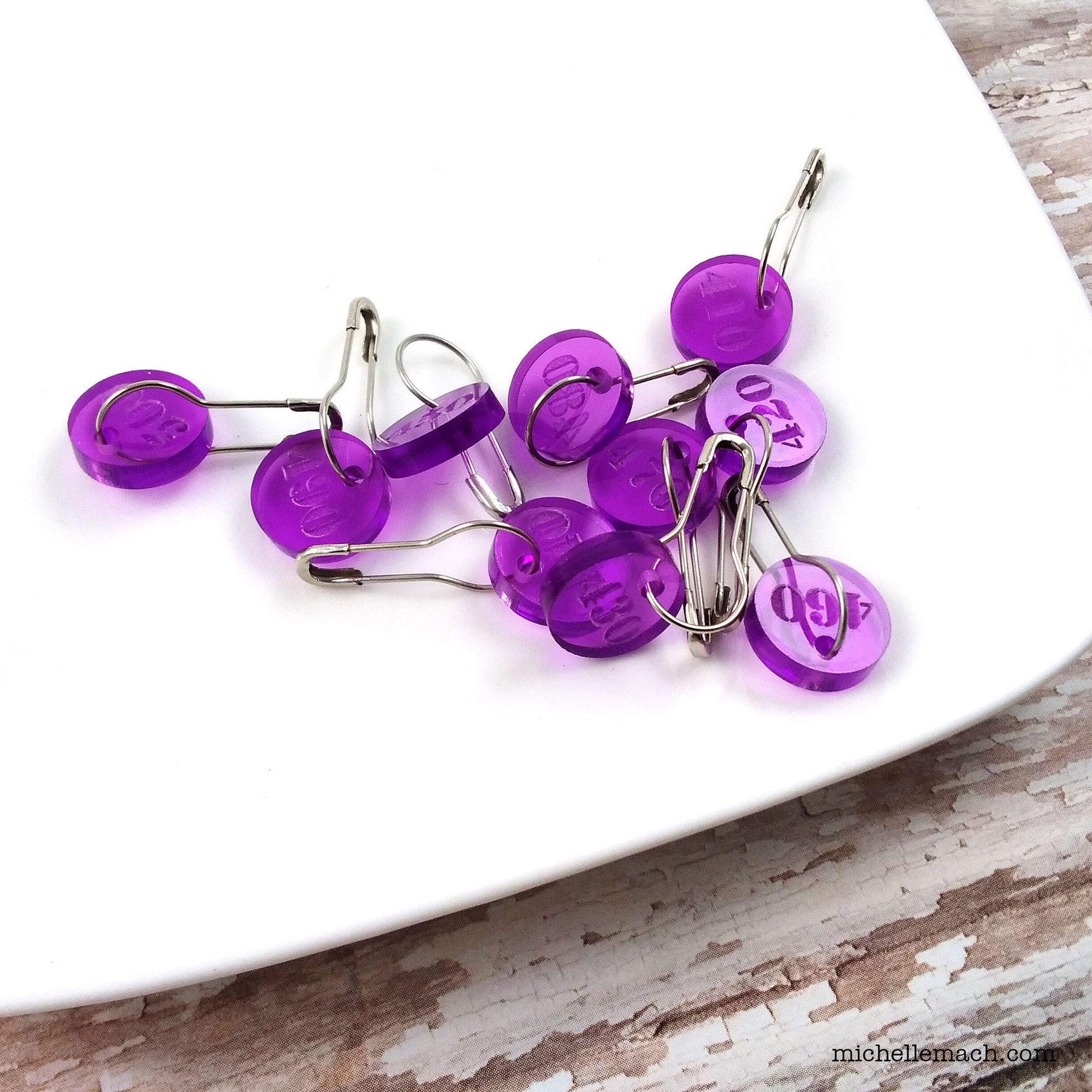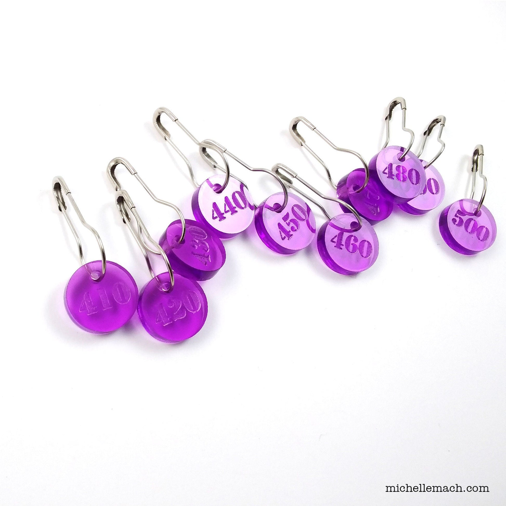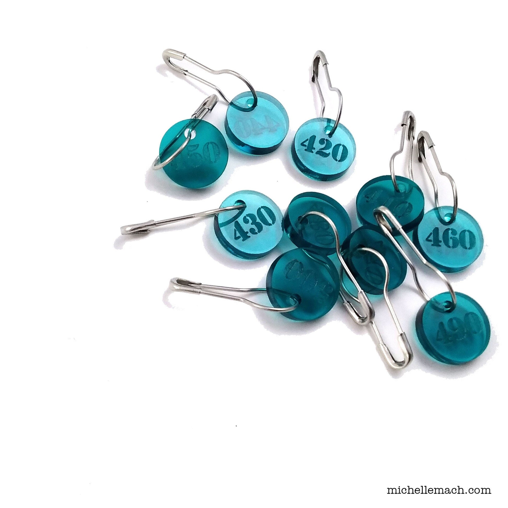 Keep track of your work with these 10 handy numbered stitch markers (410-500) for those large projects! These lightweight acrylic stitch markers have the numbers engraved on them.