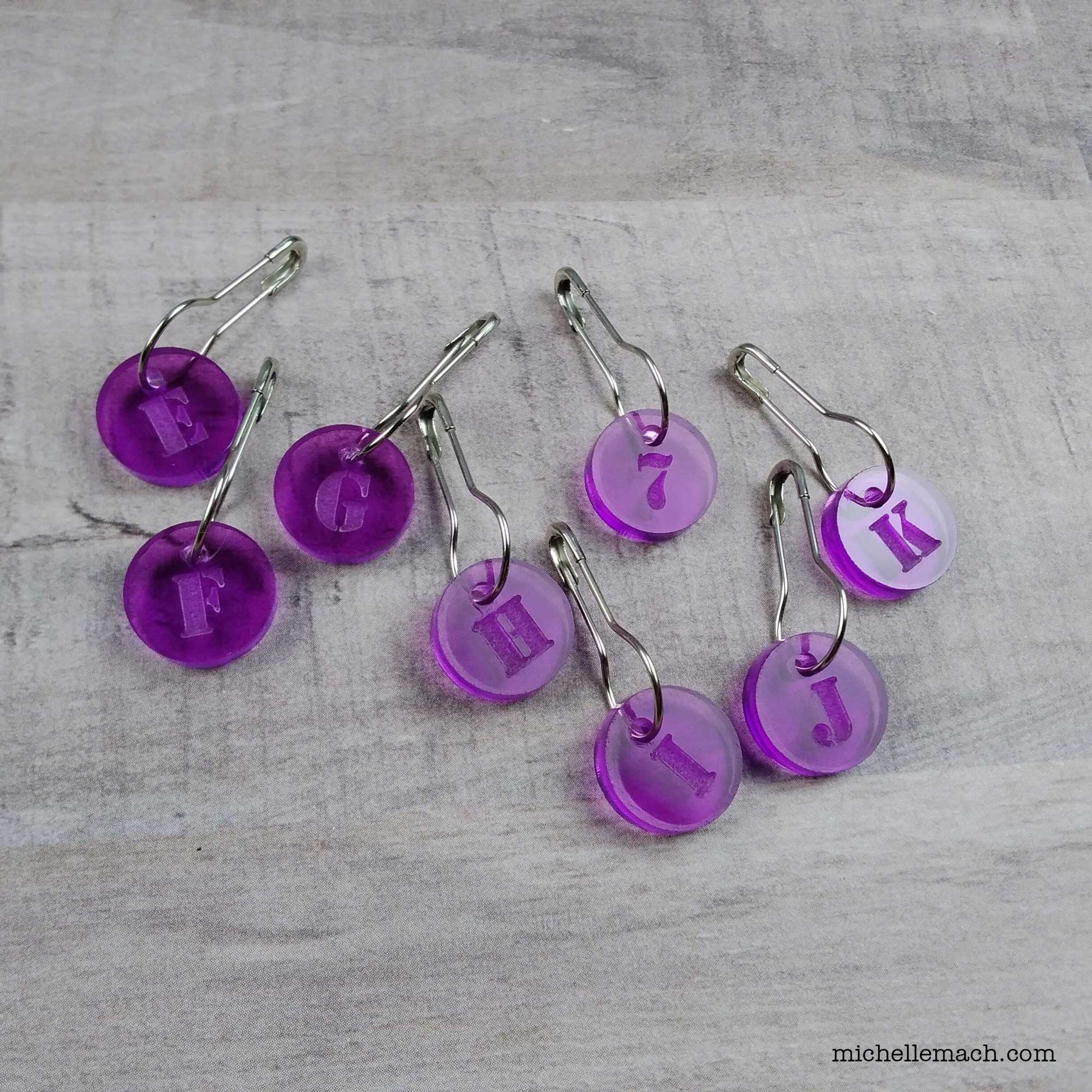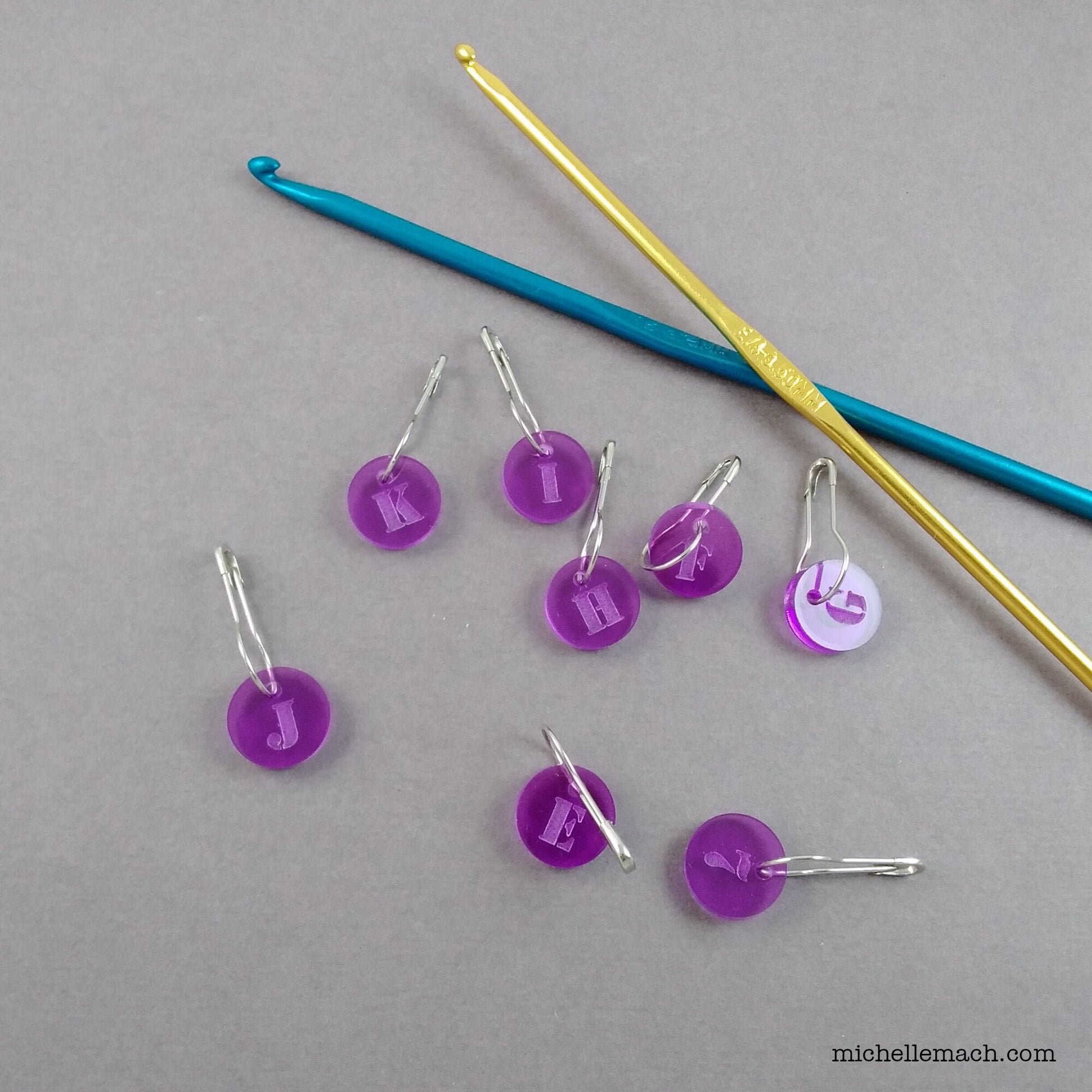 Crochet Hook Markers With Letters (E, F, G, H, I, J, K and 7) Set of 8