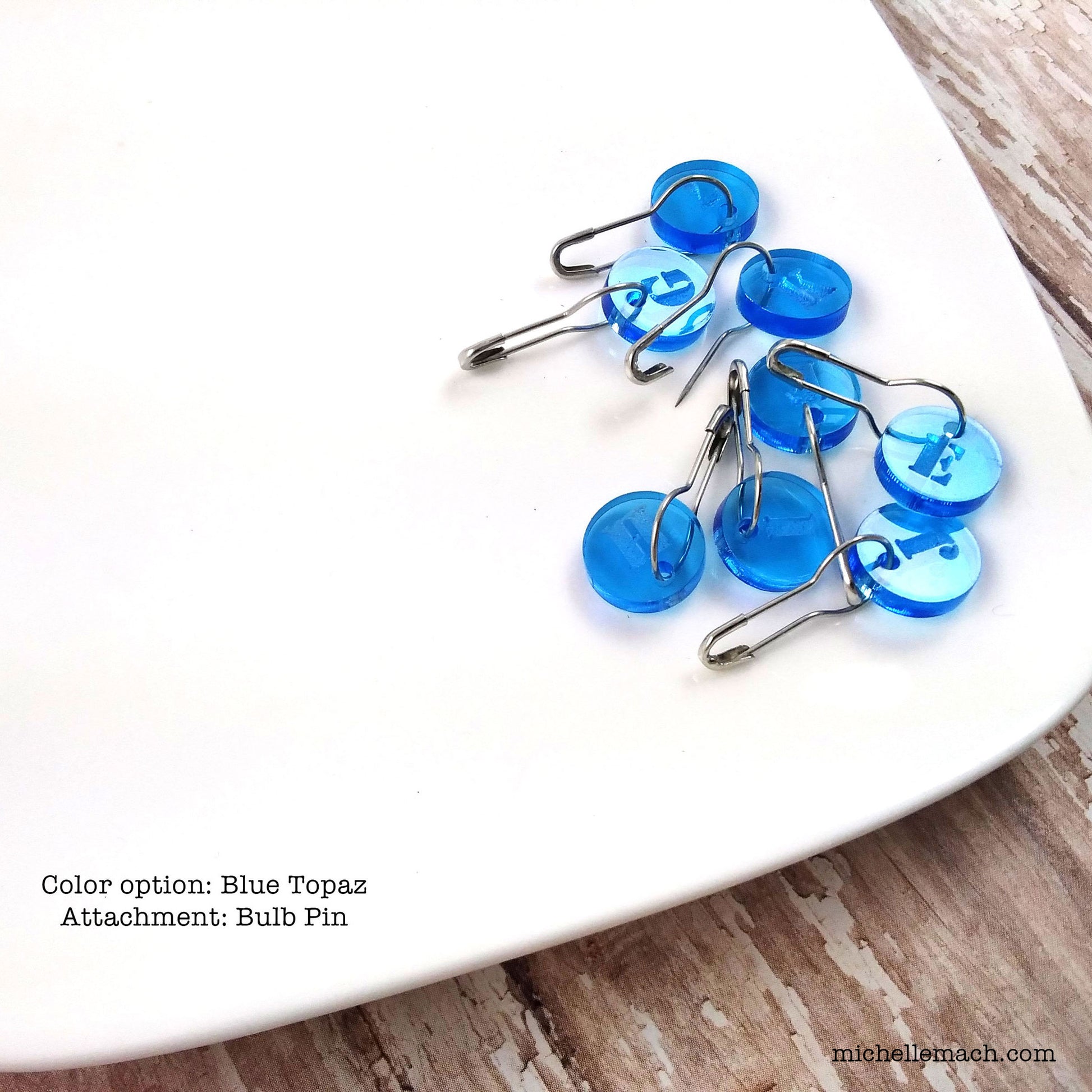 The bulb (rounded) part of the bulb pin can fit up to a 10.5 US needle if it is empty (no charm). If you don't want to move the charm to the narrow end, then you'll need to use a smaller needle. These close very securely and may also be known as locking stitch markers.