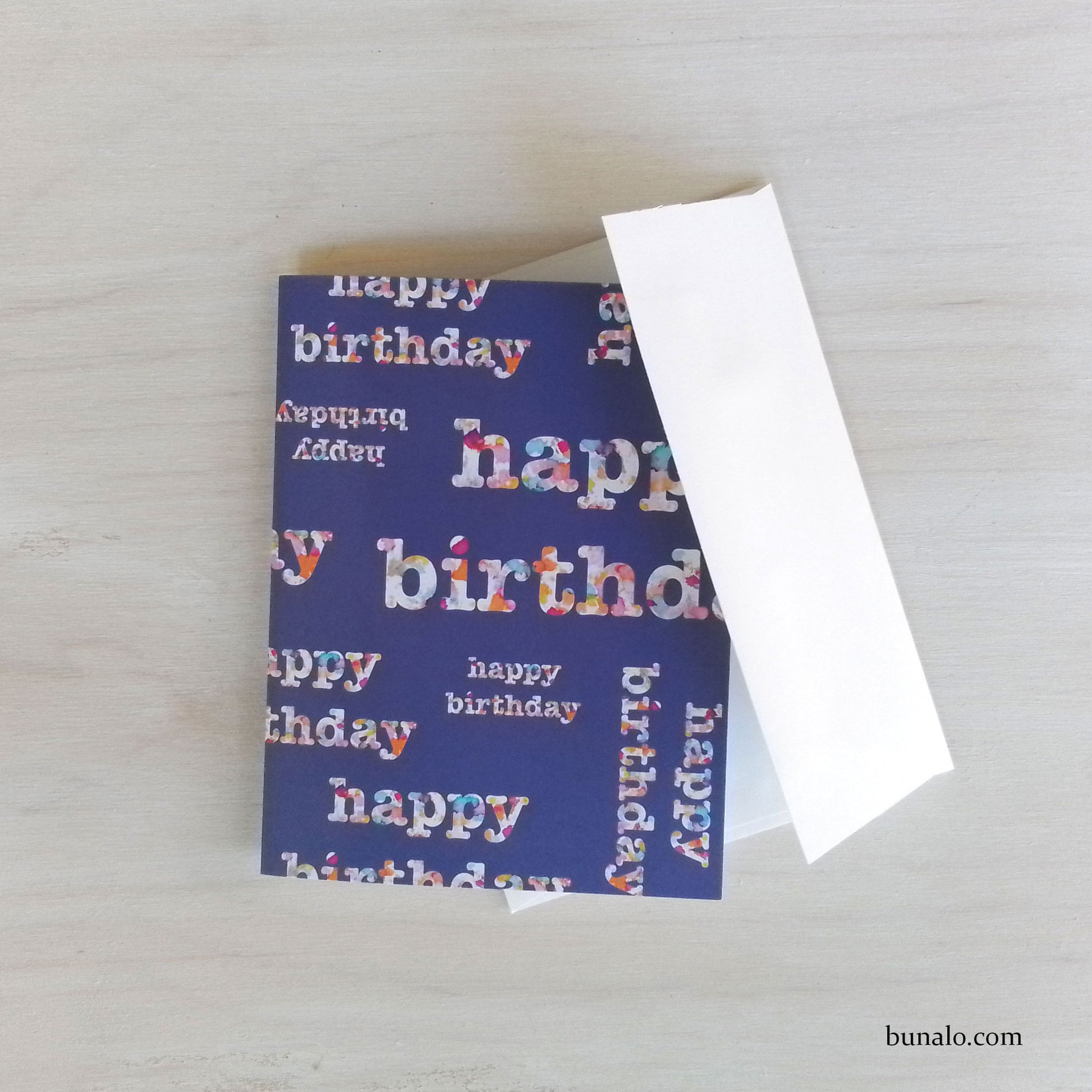 Keep a set of colorful birthday cards on hand for those unexpected office birthday parties or other last-minute occasions. I used my abstract alcohol ink design to create the "happy birthday" lettering on a periwinkle background. The back of the card is plain.
